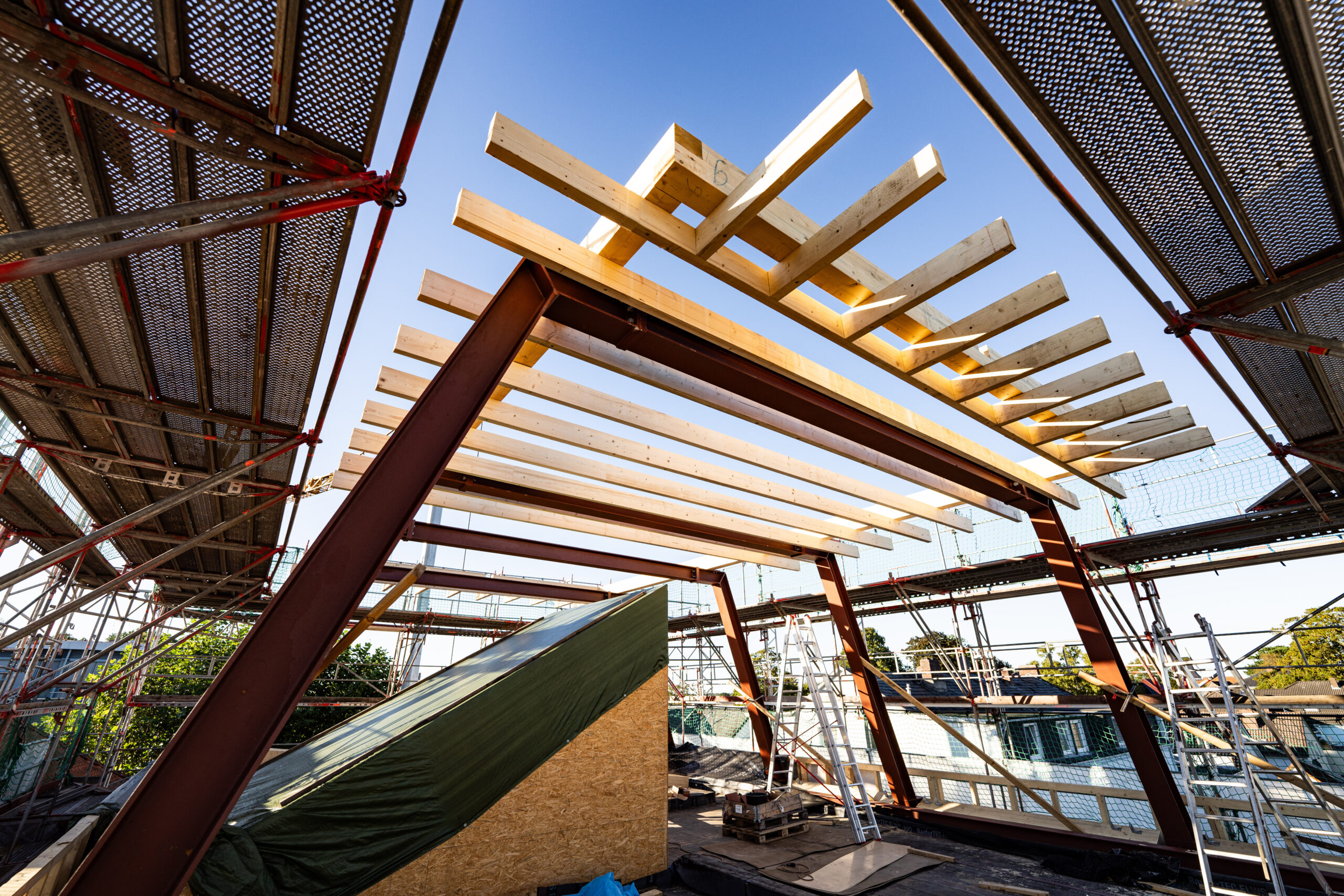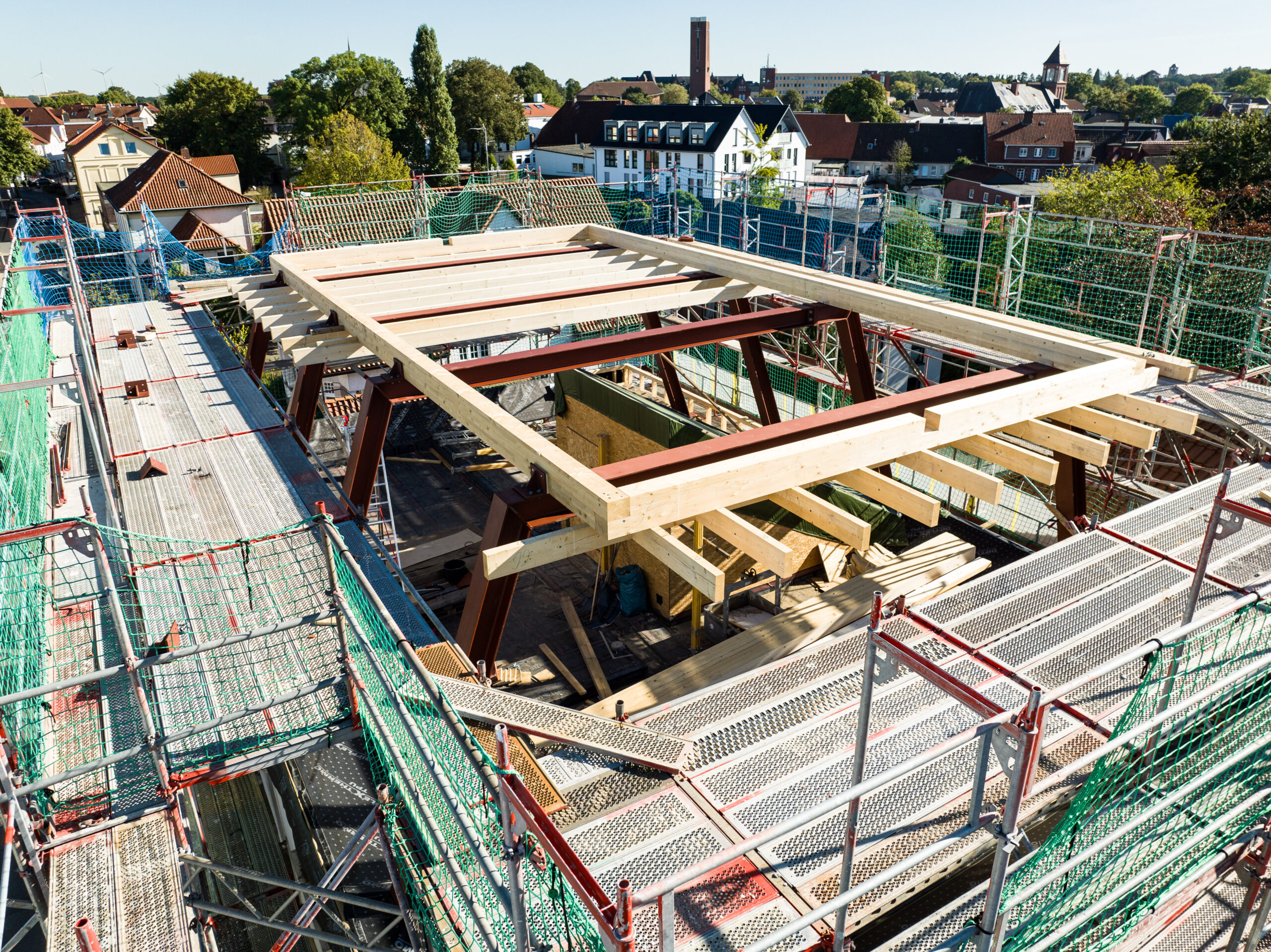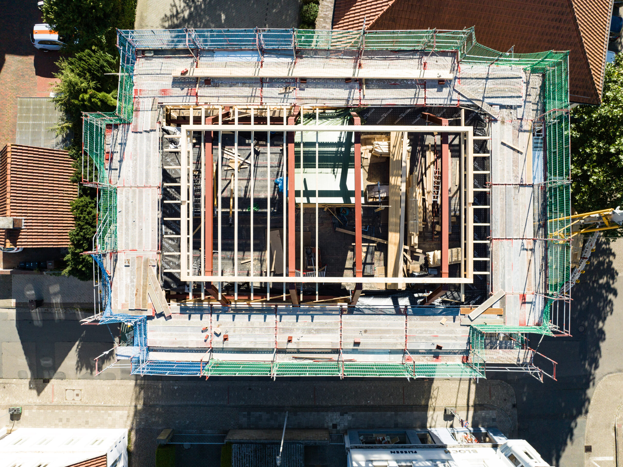 8. September 2023Aufbau des neuen Dachstuhls hat begonnen